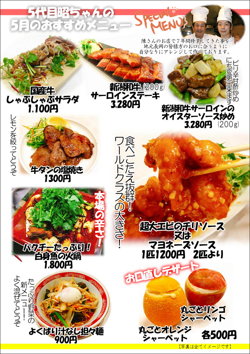 5月おすすめメニュー 30年