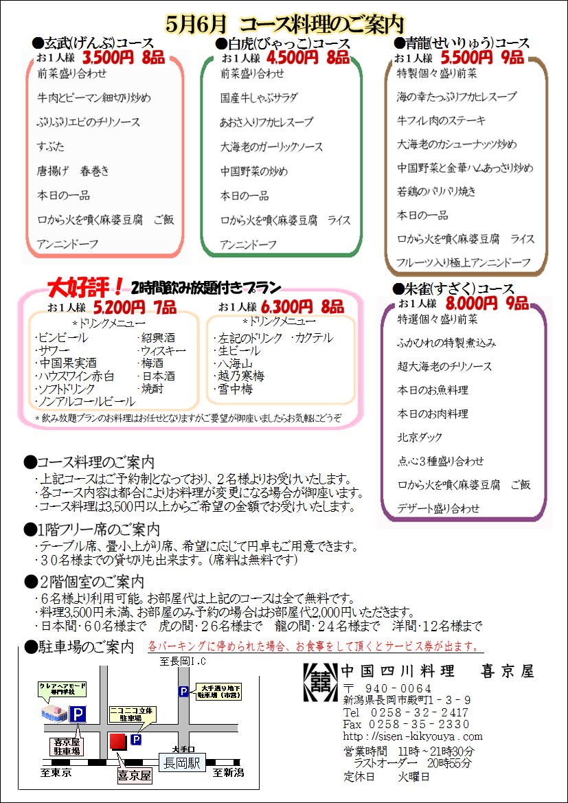 5月6月 コースメニュー 宴会 30年
